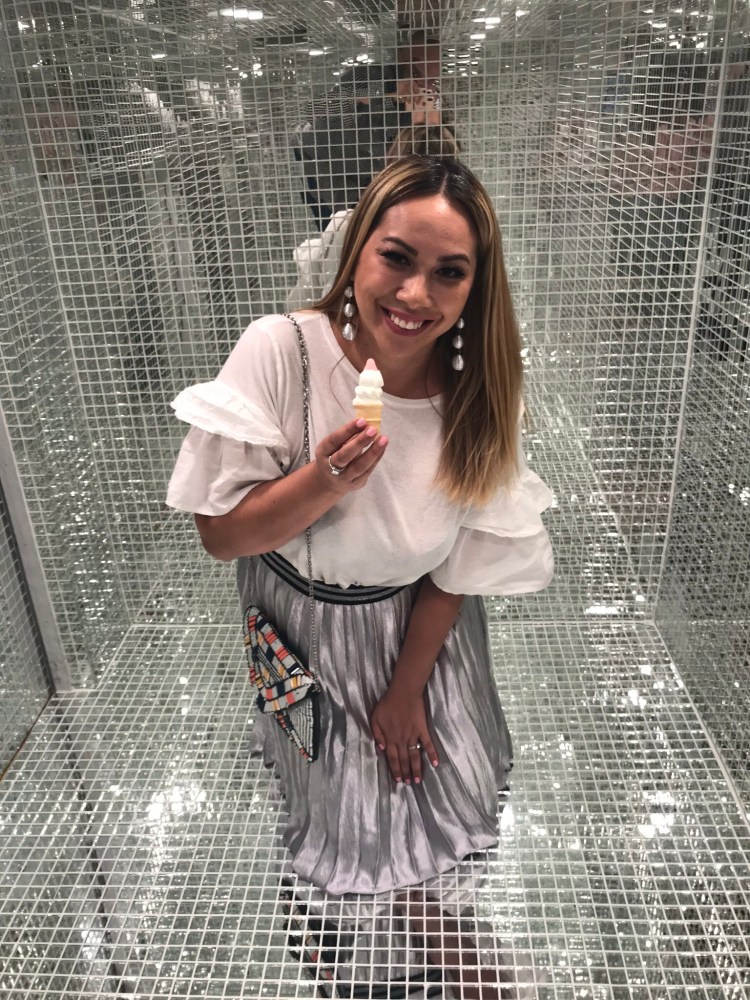 We did receive a few yummy samples, including glitter dusted cotton candy, mochi ice cream, strawberry dipped soft serve, & a super tasty salted caramel ice cream & coffee drizzle. The rooms were so pleasing to the eye, including the disco ball box pictured below. My favorite room was the pop rocks room, which actually had the worst lighting therefore not worthy of a shitty iPhone photo.