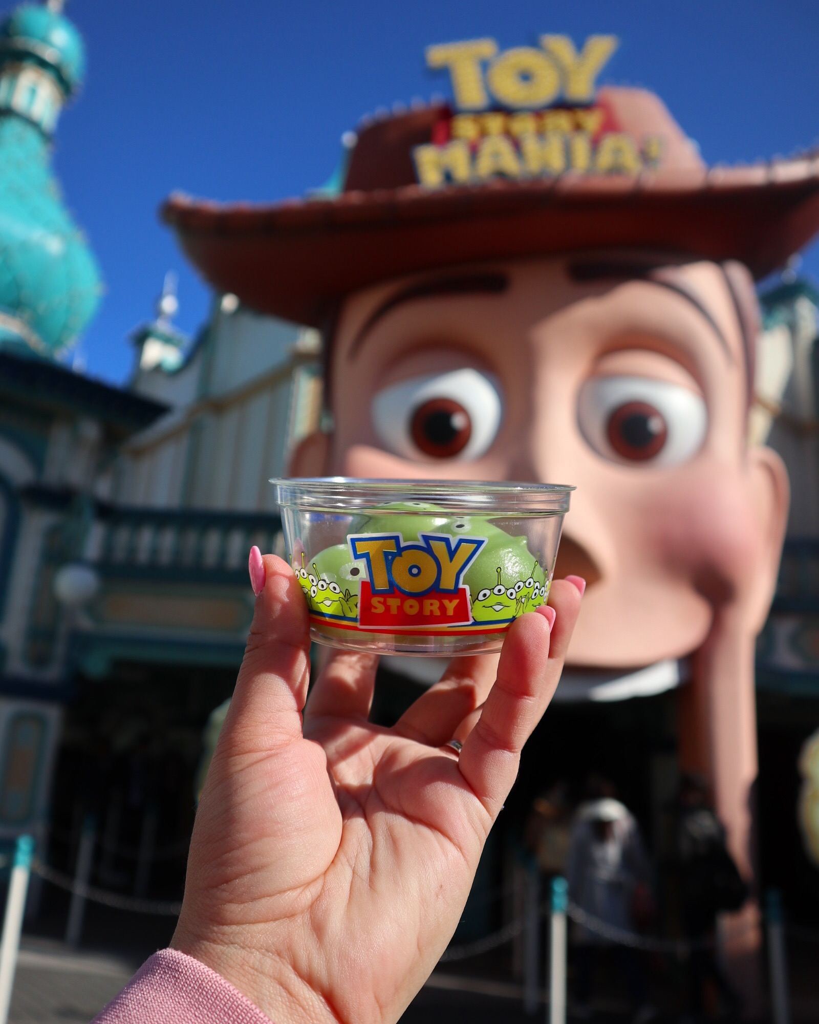 Ah yes, the real & only reason we traveled to Tokyo, GREEN ALIEN MOCHI. I saw these babies all over Instagram & Pinterest during my research & couldn’t wait to try them. Similar to the Storm Trooper mochi we tried at Tokyo Disneyland, these came in chocolate, strawberry, & our least favorite of the bunch, cream. They were so squishy & cute, not to mention IG worthy. The whole Toy Story land was incredibly done. We opted to skip Toy Story Mania as it’s a copy & paste (aside from the queue) of our ride back home. This is the one people are running to in the AM, very popular.