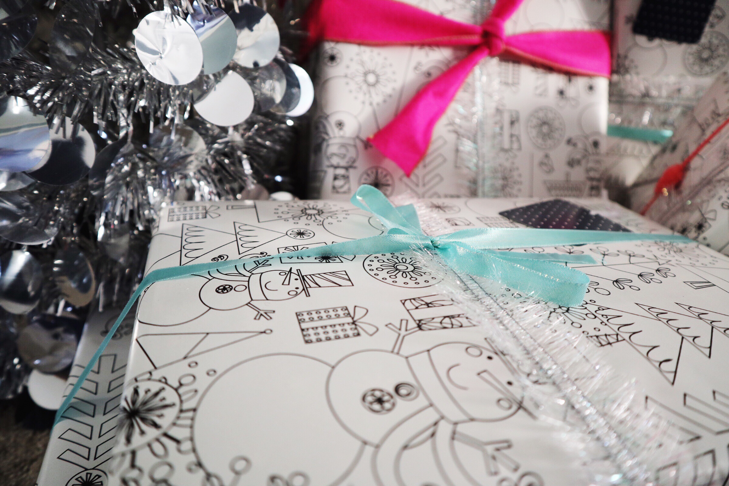 This year our wrapping paper came from Target, the giver of all great things. My husband does the wrapping in our family. He used to work retail & has this whole wrapping thing down. I on the other hand apparently wrap like I’m blindfolded & drunk. However, I am allowed to do the decorating, which is my favorite part anyway. Suck it, Bobby.